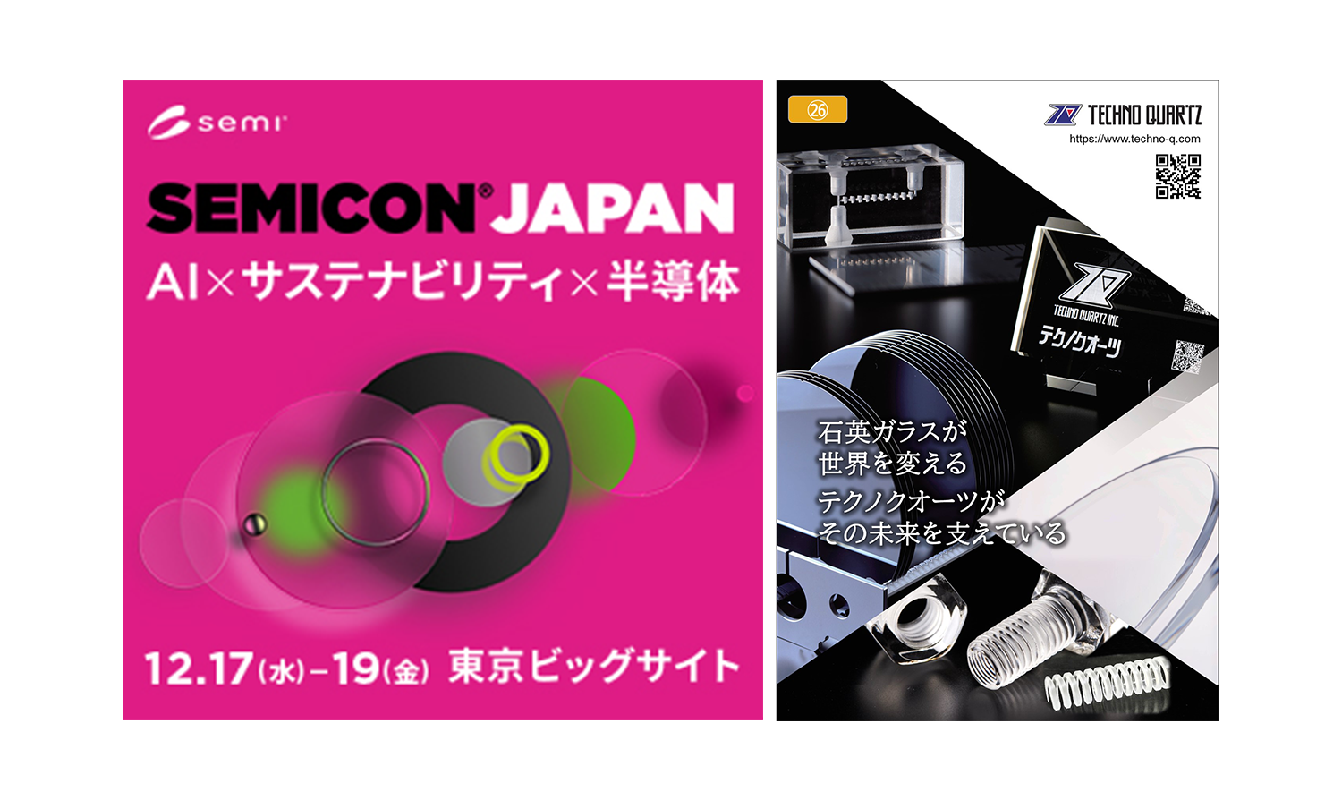 テクノクオーツは、2025年12月17日(水)から19日(金)の3日間、東京ビッグサイトで開催される「SEMICON Japan 2025」(東北パビリオン内)に出展いたします。ご来場の際は、ぜひ弊社ブースにお立ち寄りください。