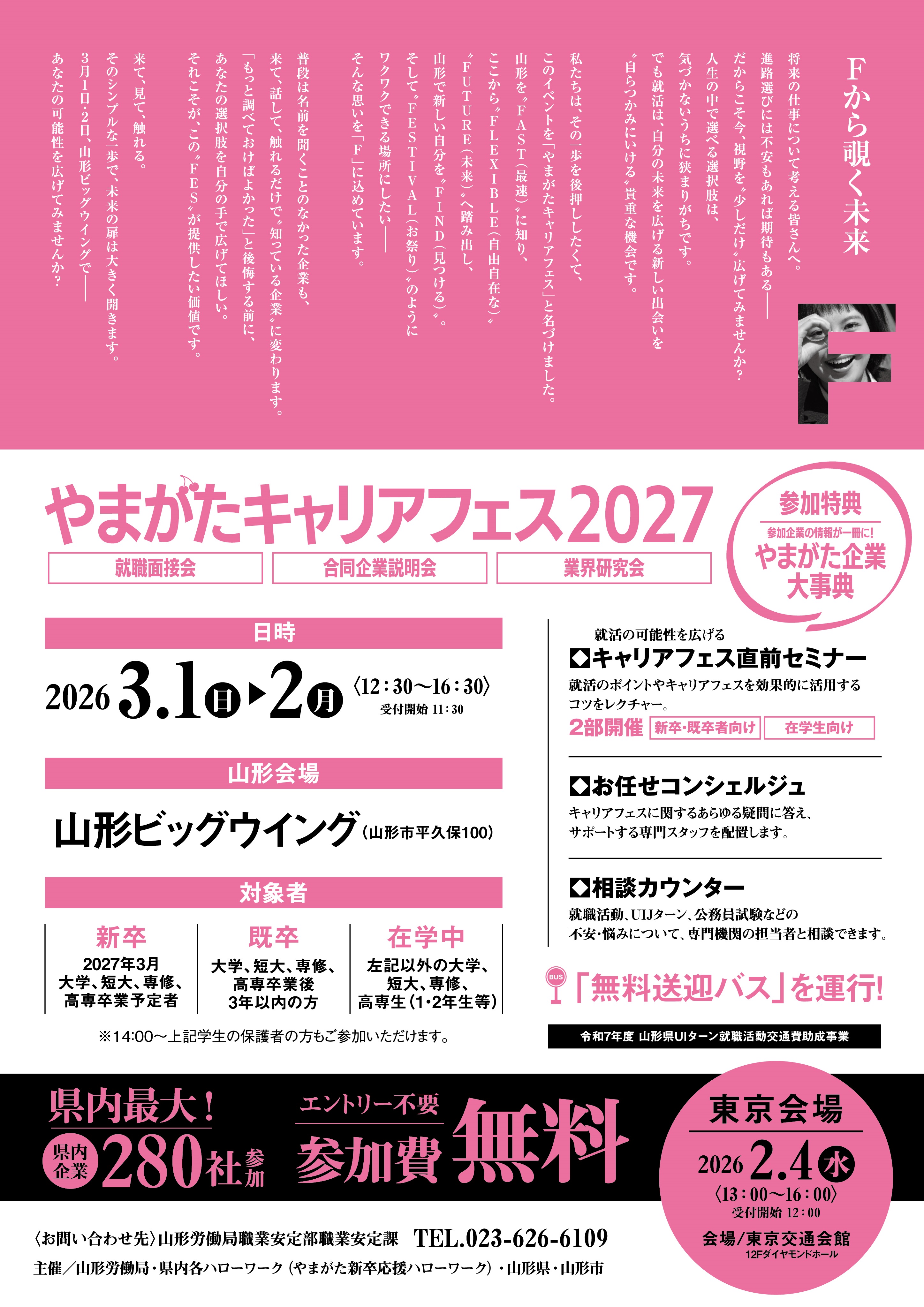 「やまがたキャリアフェス2027」への参加について 投稿日: 2026年1月6日2026年1月9日 投稿者: msiadmin テクノクオーツは、2022年12月14日(水)~ 16日(金)の3日間、 東京ビッグサイトで開催される「SEMICON Japan 2022」(TOHOKUパビリオン内)に出展いたします。 ご来場の際は、是非弊社ブースにお立ち寄りください。 多数のご来場ありがとうございました。 テクノクオーツは、2027年新卒を対象とした「やまがたキャリアフェス2027」の「山形会場」に参加します。 ご来場の際は、是非弊社ブースにお立ち寄りください。 山形会場 日時 2026年3月2日(月)12:30〜16:30 会場 山形ビッグウィング 合同企業説明会 公式サイト https://yamagata-gosetsu.mhlw.go.jp/